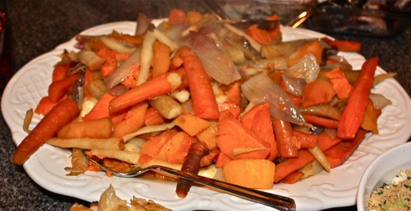 Jeff and Maria brought the most amazing roasted root vegetable smothered with fresh ginger. Delectable. And, enough to feed two armies!