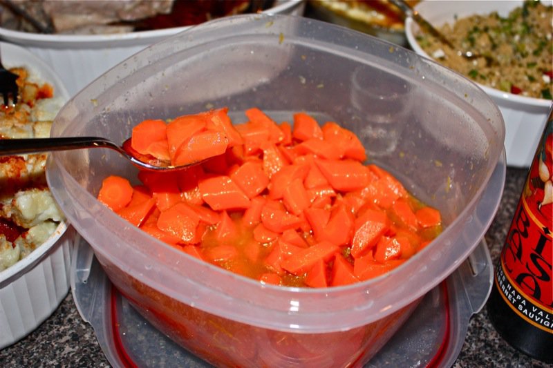 They also brought some vibrant and flavourful honey glazed carrots…. and… I suppose I should confess…. some foie gras. Oh, my! It was such a treat yesterday as a reward for cleaning up the very low maintenance party. I said I would share it with those that stayed last, and then I forgot! Really!