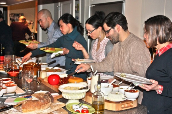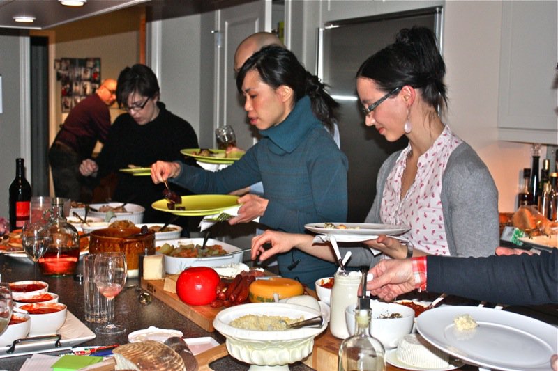Valerie, your pictures do the party justice! It was absolutely worth it to brave the roads and weather. Your bread and cheeses and warm hospitality instantly melted away those pesky, snowy chills. It was such a lovely group of people and the food they prepared was wonderful. Thanks so much for opening your home to all of us. Next year we should plan a follow up “leftovers and stock” party. I can’t believe I’m excited already for next winter!