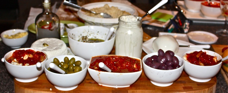 Above are my oven roasted garden tomatoes (which I absolutely love) with Bocconcini cheese. Behind that row, are my Yogurt Cheese Balls and my Crème Fraiche with more young cheeses.