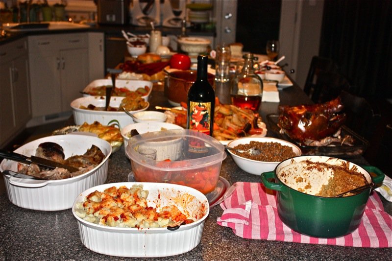 Incredible feast, Valerie! I’m so glad some folks were able to brave the snow and make it in safely. That pig looks amazing – the skin so gorgeous and crispy. I’d happily dig into that!!
