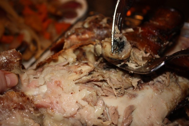 I completely understand, thus the warning that the faint of heart go no further. A couple of years ago, I would have had nightmares seeing someone eat a pig head, but I have a different frame of reference now – and the idea is that if the animal is sacrificing its life, we need to be respectful of that and use every bit of it.