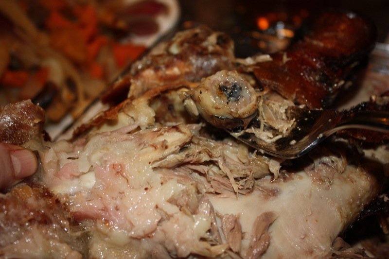 Below is the meat that was in the eye socket upside down. I had a little strand of the meat extracted from the socket and it was the most flavourful unctuous gorgeous part of the pig I could even imagine. There was nothing gross or unappealing or foreign about it. It was meat. But the most delectable part of the pig imaginable.