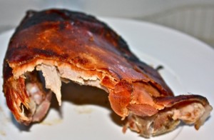 This little piggy was so small he didn’t have a lot of head meat, but what he did have was definitely worth taking a knife and fork to. I am not sure who got the other cheek. I forgot to look at how wide Corey’s smile was before he left!
