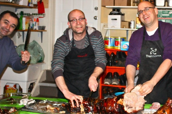 We had about 40 people booked into the party. By party time, we had 24 cancellations. Of course, I was crushed. But, what could we do? We had picked up the pig from Alan at Irvine’s Farm Fresh, delivered it to Vanja’s buddy for brining and roasting, and had everything else prepped and ready to go. I teach for Edmonton Public Schools and in over 100 years, they have never closed a school due to the weather, so I kept that Northern “Yes we can!” attitude, and hoped for the best.