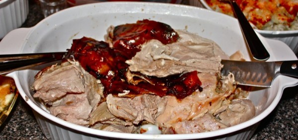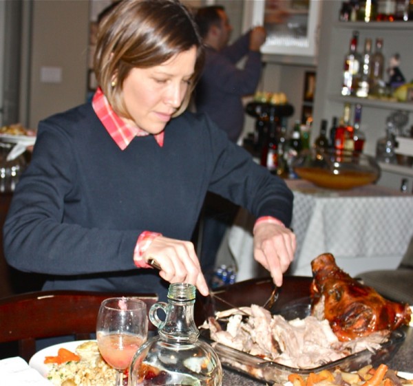 Look at that gorgeous pig! I don’t eat much meat, but I think I would be clamoring with the guys to have a chance to carve that beauty 😉 (Somehow, I never knew you didn’t eat meat, Valerie!) I’m sorry the weather caused many people to cancel, but now you had a more intimate party with your friends 🙂 And there’s always next year, right?
