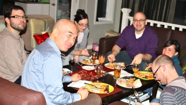 This lovely post is a real feast in every sense of the word! What a great group of people, and you are so sweet to open your home for this wonderful event. I’m glad that so many were still able to show up despite the snow. It looks like quite a meal and I’m sure fun was had by all!