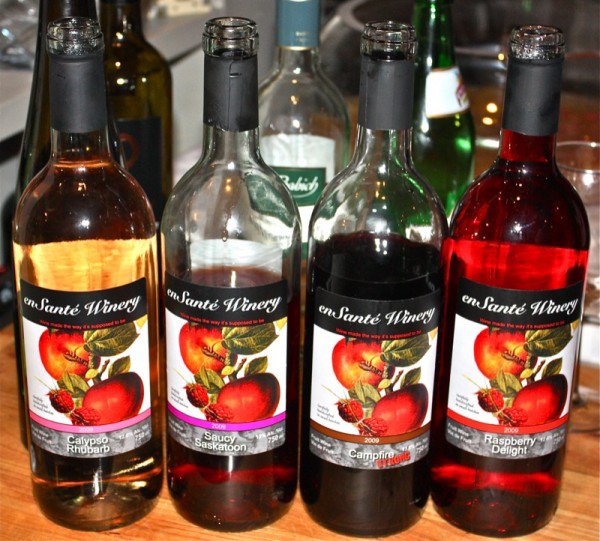 As people arrived, there were drinks and appetizers. This is always my favourite time of the evening: meeting and greeting! Below, left, is Kevin’s amazingly delicious homemade apple wine. To the right is Xina’s generous array of tastings she provided from her fruit wine business: en SantéWinery.