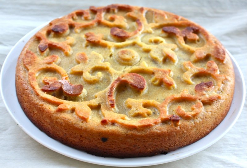 What a sweet story of how you got this beautiful pan! I can see why you were so obsessed with it — it’s gorgeous! The apple cake you made sounds delicious and there are so many other possibilities too…it looks like wrought iron so it might be fun to make a vanilla cake and paint the scrollwork with dark chocolate…pretty and delicious!