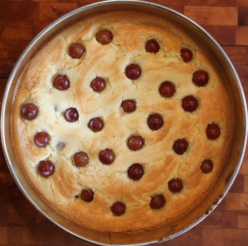 - Sprinkle the remaining grapes onto the top of the cake and continue to bake for 25 minutes, or until a toothpick comes out clean when inserted into the centre of the cake