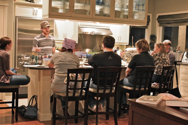 This is my own cooking school! I started it in January! There is a link to the classes in the badge at the side and in the menu bar at the top of my site, and also at the end of most posts. Everyone went away with big smiles.