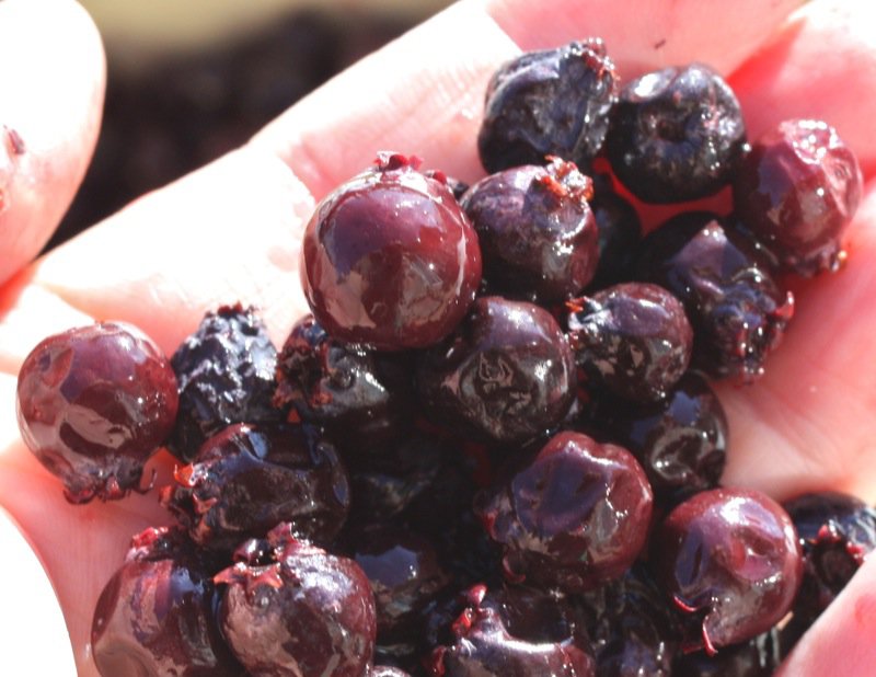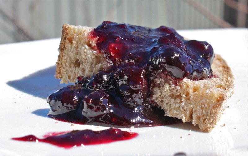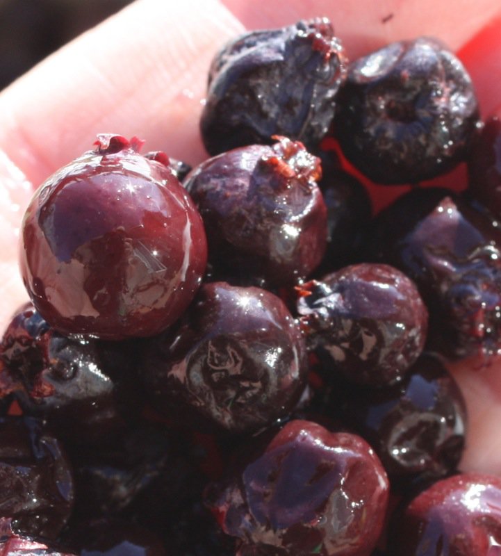 Also, I made the jam. I cheated and sieved the berries (I do this with all seedy berries cuz I’m a wimp) and added plum sauce which doesn’t change the flavor of most fruits for added pectin. Very good! A unique flavor…nothing like blueberry. Saying they are like the blueberry is like saying that frogs legs taste like chicken.