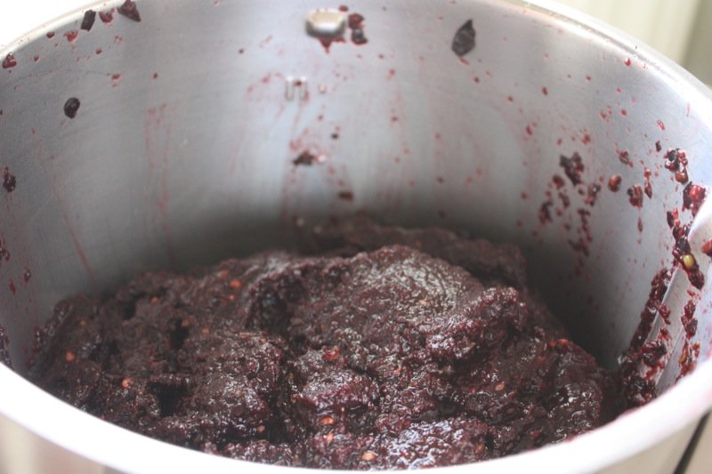 I puréed the pulp below, as some like a puréed jam. After seeing the texture, and knowing what I like, I decided to leave the second batch whole and combine the two and it worked perfectly. Since then, I just leave them whole, as indicated in the recipe.
