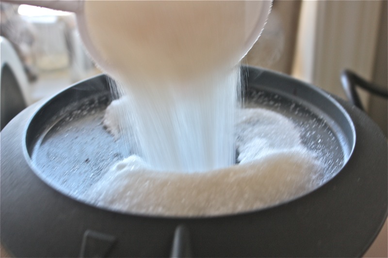 - Meanwhile, add water and sugar through hole in mixing bowl lid when berries start to boil approximately at the 10 min point (see Tips)