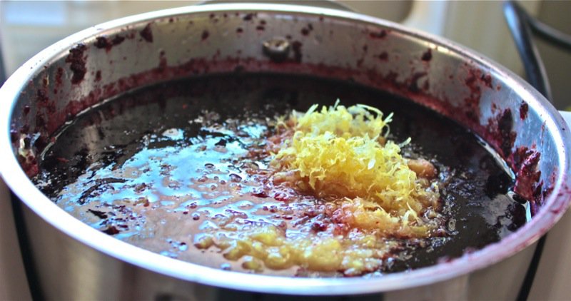 3. Add lemon juice and peel; bring to a boil and cook, stirring frequently until thick, about 15 minutes