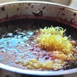 Mom and I searched for the right recipe. The oldest one we could find, with the least amount of sugar and no pectin. We found grandma’s recipe and learned it is the traditional one used by all in the prairies: 4 cups berries to 3 cups sugar with about 1/4 cup of water and juice and zest of 1/2 a lemon. We made our first Saskatoon Jam together and it was so easy and so much fun. As I am growing my own Saskatoon berries. I will have enough for pies, and jam every year. I hope my new Canadian Slow Food friends will enjoy this little labour of love.