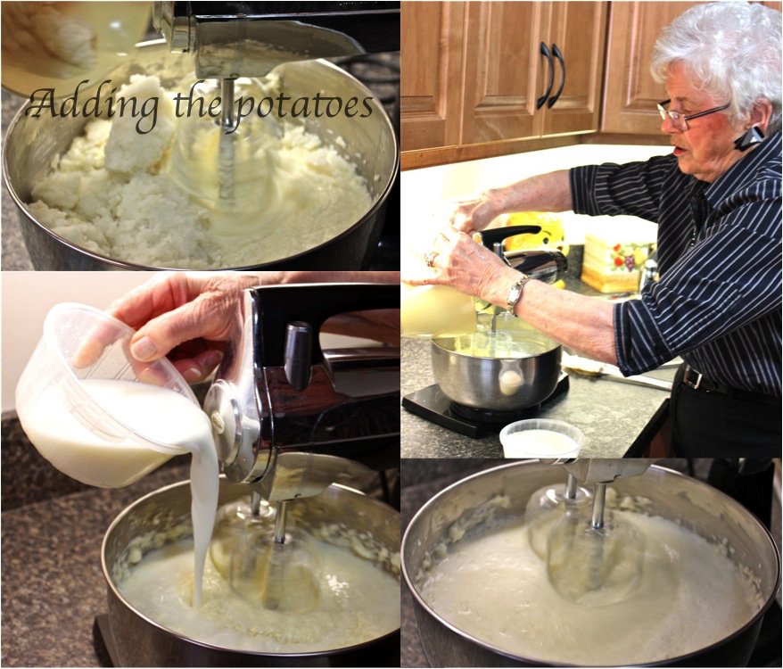 Not only was mom dressed to the nines (this is how she has always been), but she had everything measured and ready to go before I arrived. I love how she used the water the potatoes were boiled in for the water in the recipe. An aside: I have always called these “hot-crossed-buns”!