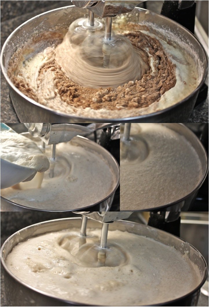 And when I thought the bowl was already too full, in goes 4 cups of flour: slow and steady. Lots of beating and patience.