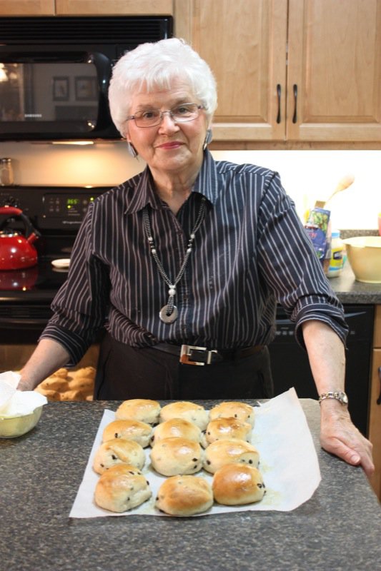 Many of you know my mom, Helen, as I have captured her culinary prowess many times. My favourite is the post about her Homemade Angel Food Cake. It is a great story. Today, I am capturing her making these lovely traditional Easter buns. This is clearly a recipe that has become our own from our British countrymen. My mom and dad celebrated their 60th Anniversary last November and there is still no stopping her. Dad and my baby sister, Penny, are curled in their chair filled with homemade Hot Crossed Bun anticipation!