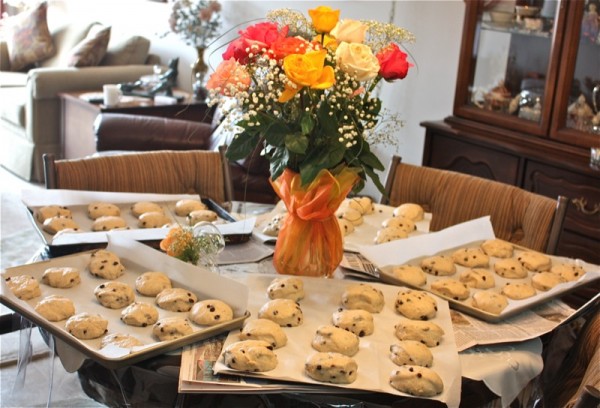 What a production! To think that your mom, looking amazing, is directing this kind of operation and producing all these dozens! Wow! I was getting tired looking at all this work! But the result is so worth it!!!! You should have been head of a baking empire!