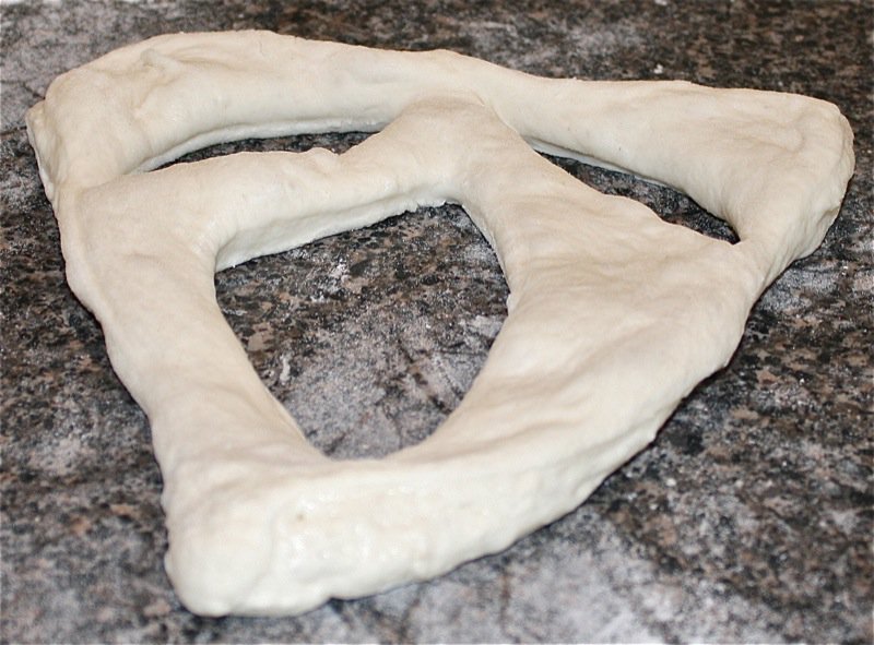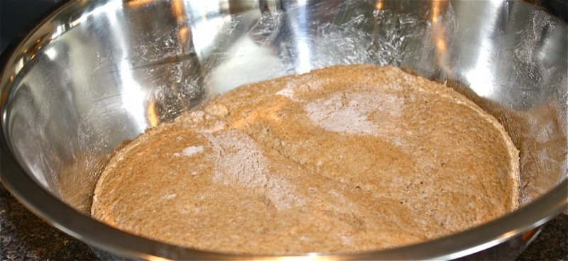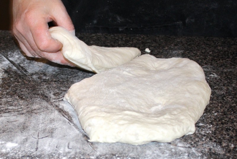 - Start to throw the dough onto the counter in a circular motion, using both hands to gather it in, and then throw it out onto the counter, pulling it back in a circular motion; it will stick at first, but after about 15 minutes (the first time you make this), the gluten with be worked enough to stop sticking, and you will then make a ball with the dough and sit it in a warm place to proof until doubled in size (This is how I learned to make this bread. It is difficult to understand how to work dough by reading; the technique of working dough has been passed from an experienced hand to a young and eager hand through the ages.)