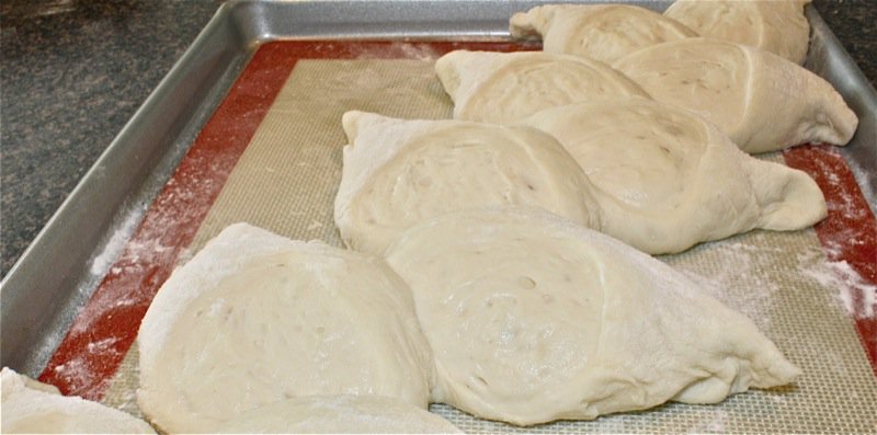 - Place onto a line baking sheet and dust with rice flour (we used all purpose); proof again until doubled in size (same time as earlier)