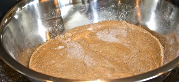 - Mix the water into the flour thoroughly; this will be a highly saturated dough (do not add more flour)