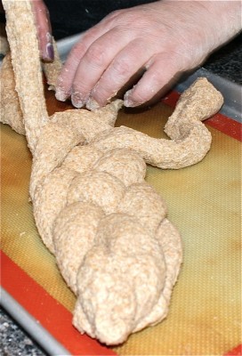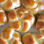The rye bread was very dense, but sliced thin, as it always is, had a gorgeous flavour and I wondered why more 100% ryes are not made. It was cut when still warm (above) so the crumb is still a little gummy. The bread was expected to be very dense, so I rolled small rolls. Each rose, but did not double. I was happy with the result, but certainly wouldn’t use it in a sandwich. This rye would be an appetizer kind of bread. I look forward to mixing up the flours and adding them with some white. I know there is some local white (a yellowish flour that Tree Stone uses) from Camrose I want to get my hands on for some of the mixing things up. However, I am one that does enjoy freshly ground, dense and moist whole wheat bread. Love it. We did some (below, later) braided and that is one way I really enjoy it. I will never be without Dan’s flour again!
