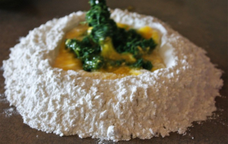 Did you see how vibrant the egg yolks are? Yup. Nadia even has an aunt who has her own chickens. This gal is connected, let me tell you! And, the spinach was added to the exact same recipe as the plain pasta recipe. It was chopped and completely wrung out first. Nadia has done this with butternut squash and many other vegetables. Next, she is going to try sweet potatoes. Or was that for her gnocchi? Hmmm…