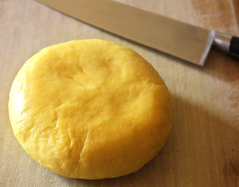 I was already tickled. Look at both doughs above. And then, each was formed into a disc and rested. An hour is best. We cut the discs to roll the pasta through the machine.