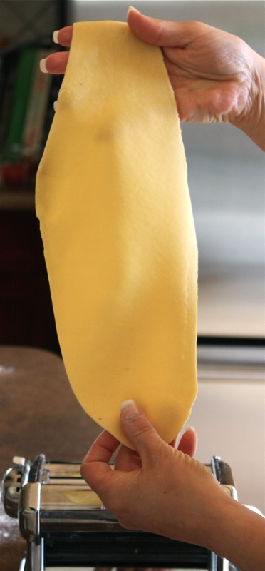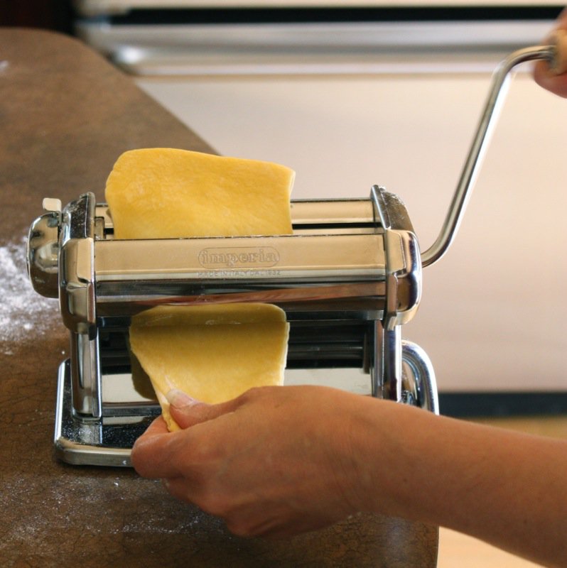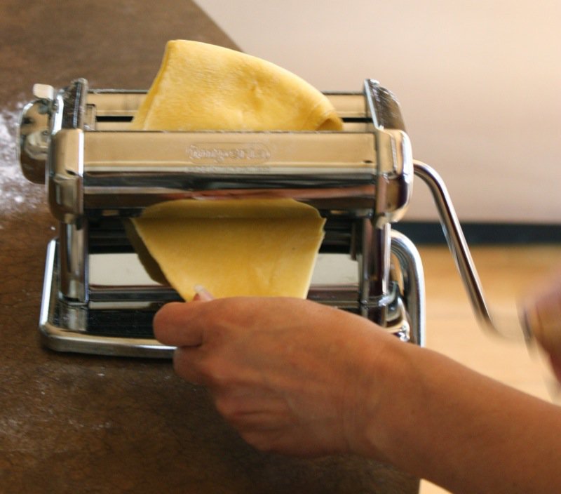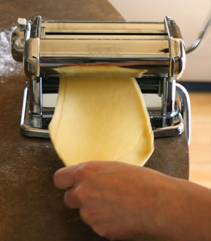 Nadia flattened each portion and ever so lightly floured it, then folded it, placing it in the machine with the widest opening, and simply cranked it out.