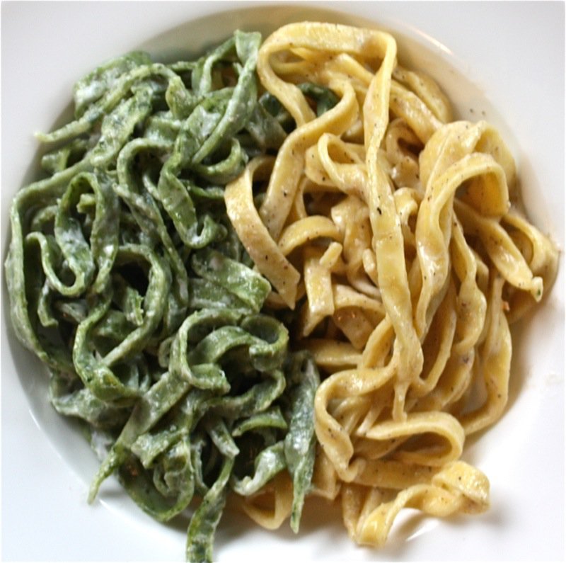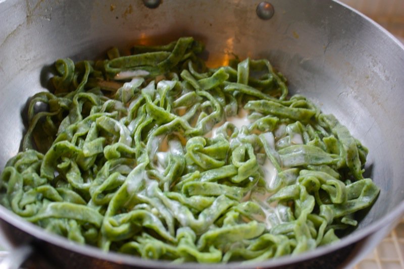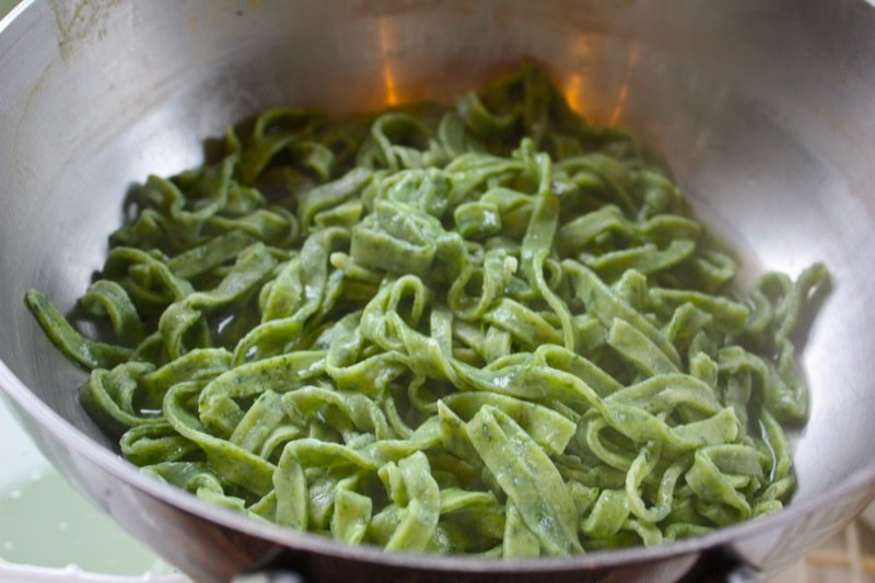 The spinach pasta had greater mass due to the extra ingredient. It was so gorgeous – and healthy!