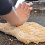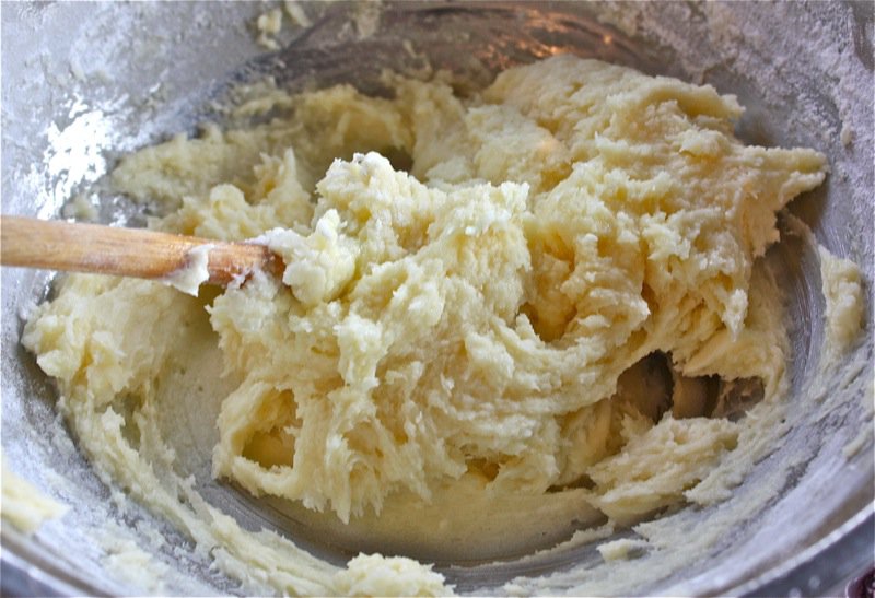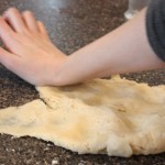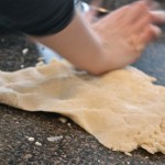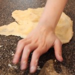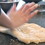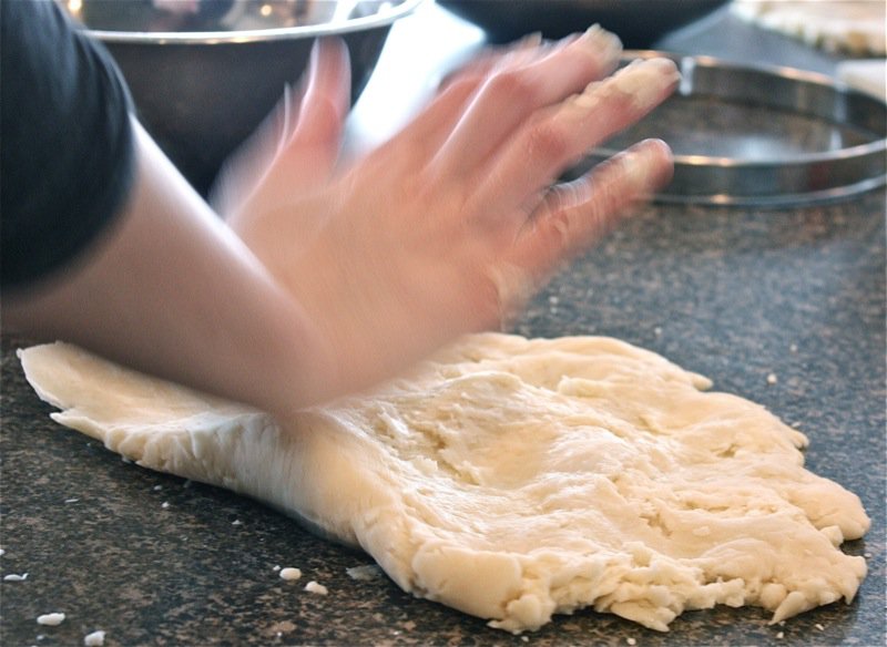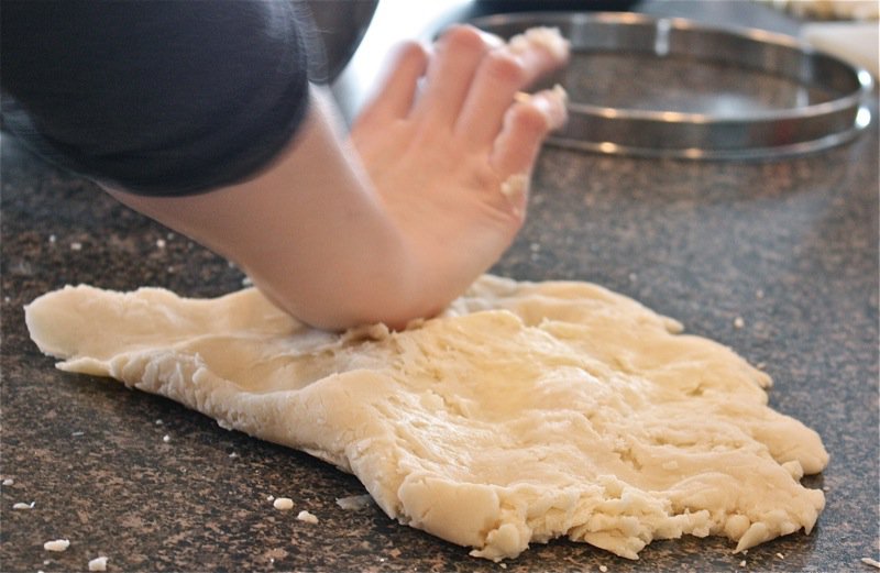 Above, Béné uses the age old method of mixing the Pâte Brisée with her finger as generations of French woman have done before her as she combines all ingredients: once it forms a soft ball, engage in the “fraiser” (countersinking) method demonstrated in the photos, below 3 or 4 times, until the dough is homogenous (with attention not to overwork it).