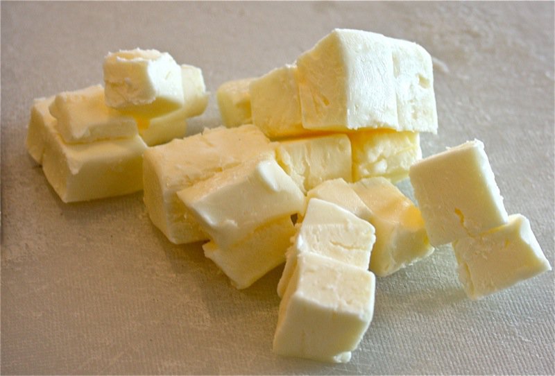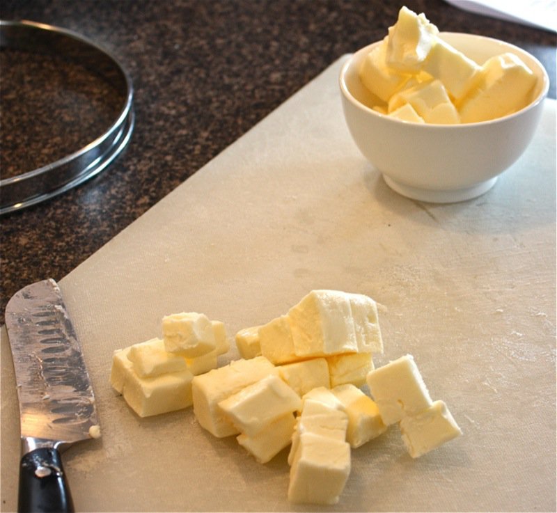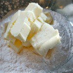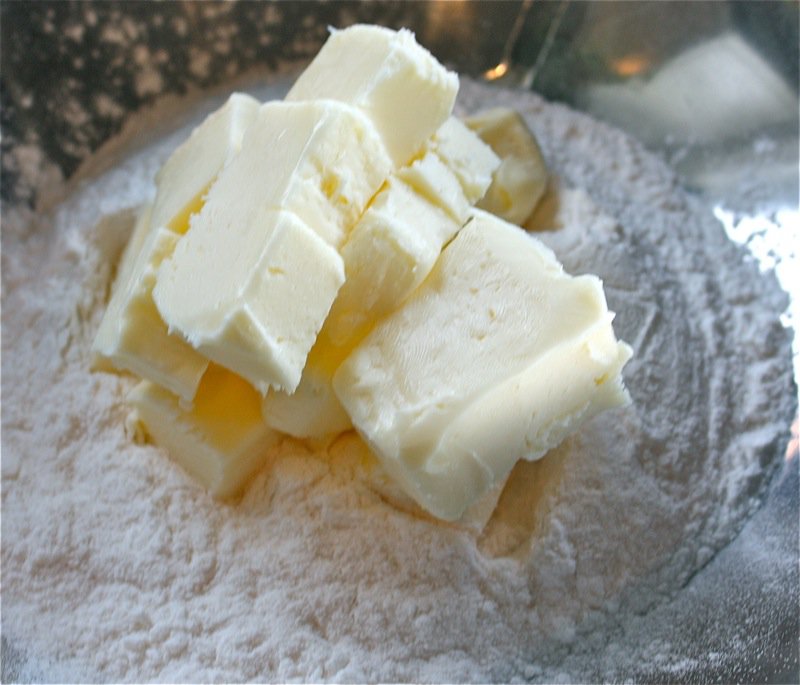 - In large bowl, mix flour with salt; cut the soft butter into small pieces and add to flour/salt mixture: dough should resemble coarse crumbs