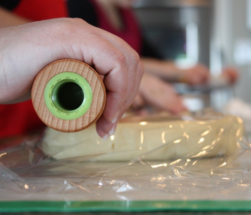 Roll each pastry our between two pieces of plastic after it has rested.