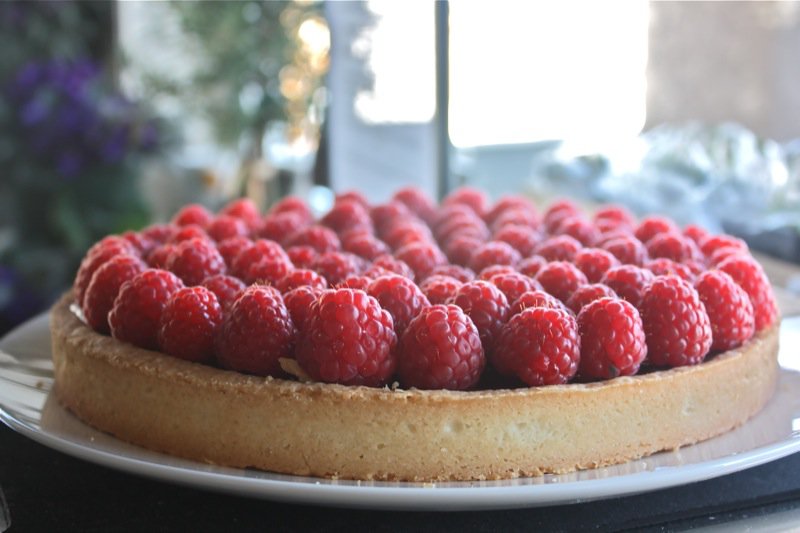 When we arrived home from Paris last summer, I threw my baggage into the house and scooted back to the raspberries bulging on my bushes bursting with perky summer sass. How I adore raspberries. I had them picked and plunked (ever so carefully) on top of a creamy French Raspberry Tart with Vanilla Cream in 60 minutes flat. Then, came the laundry.