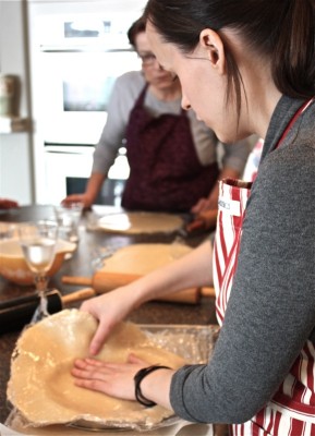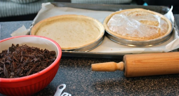 See the rice in the tart ring, below, getting ready to go into the oven?