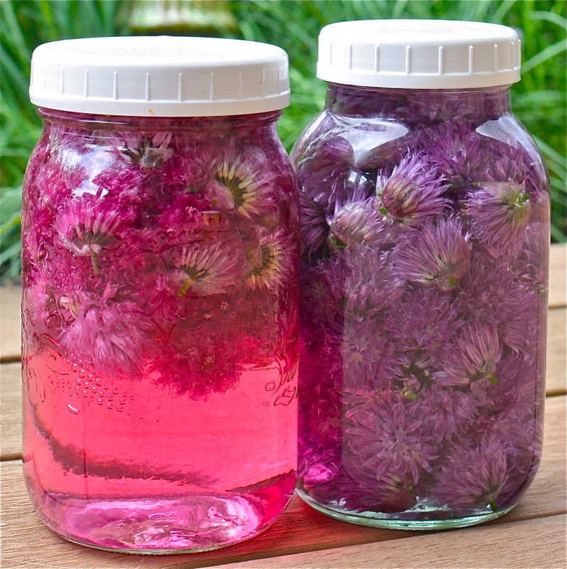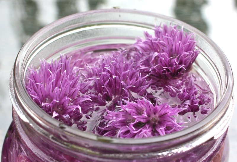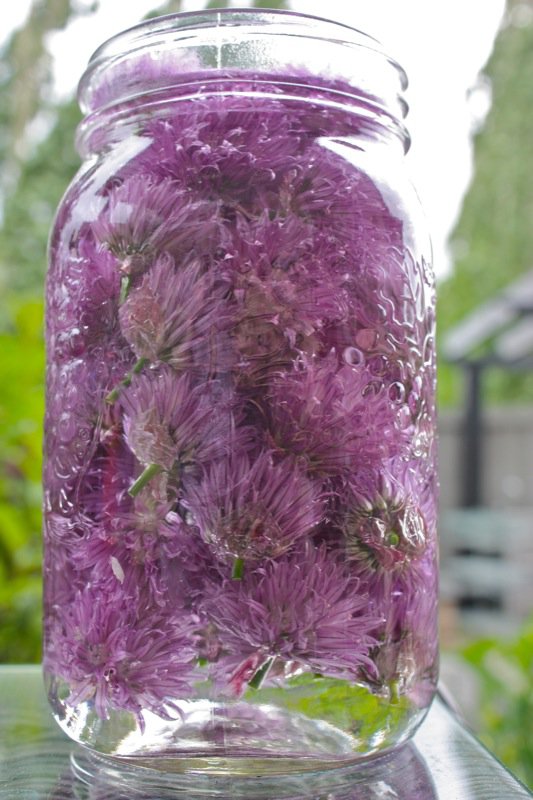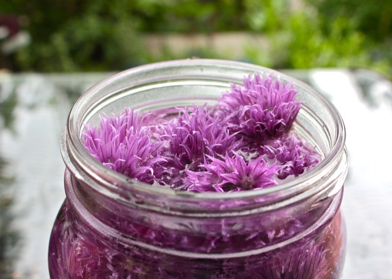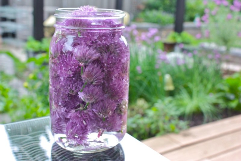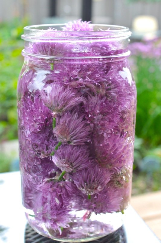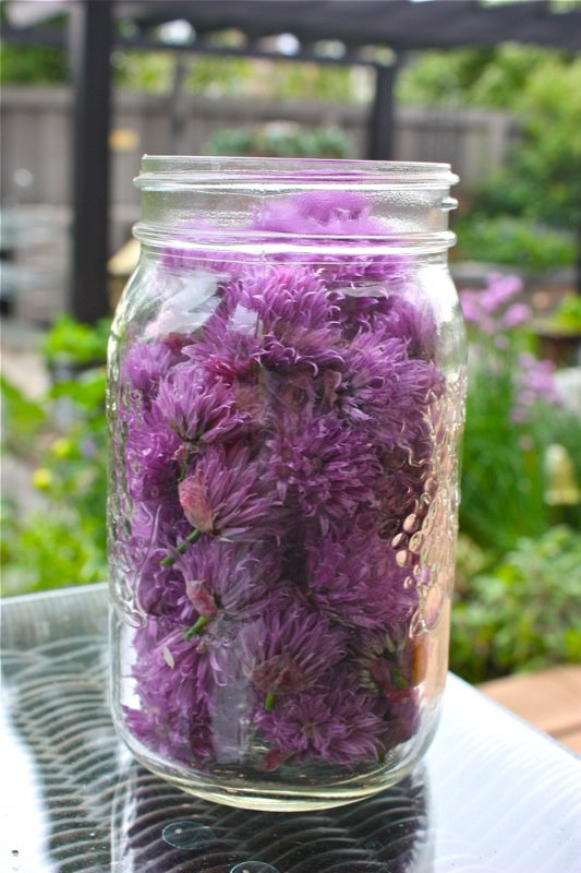 Get out your jars people! It is chive flower season and if you have an overflow of these, this is the magic solution to use them all!