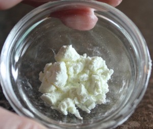 First, I use powdered egg white, or albumen; this amount will last a life time for sugaring flowers. Put a teaspoon or less in a small bowl and add an ounce or so of water, mixing really well to combine. You will get the consistency of an egg white, but not at gelatinous.