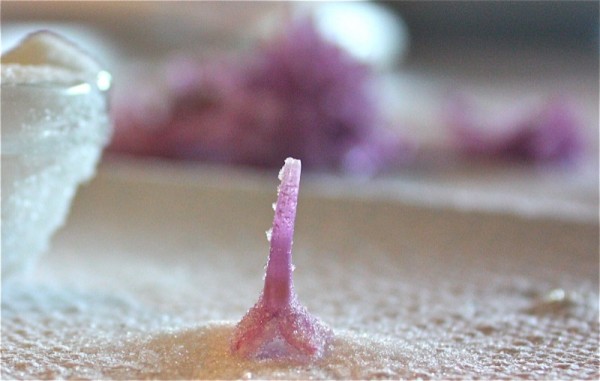 Or, place the petal side down in the sugar and sprinkle the sugar over the stem of the petal. Set on the blotting surface to dry completely: over night.