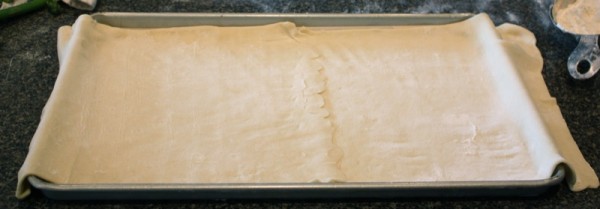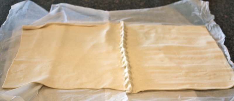 - Roll out the puff pastry, and bind the sheets together, as necessary