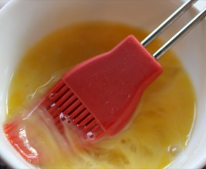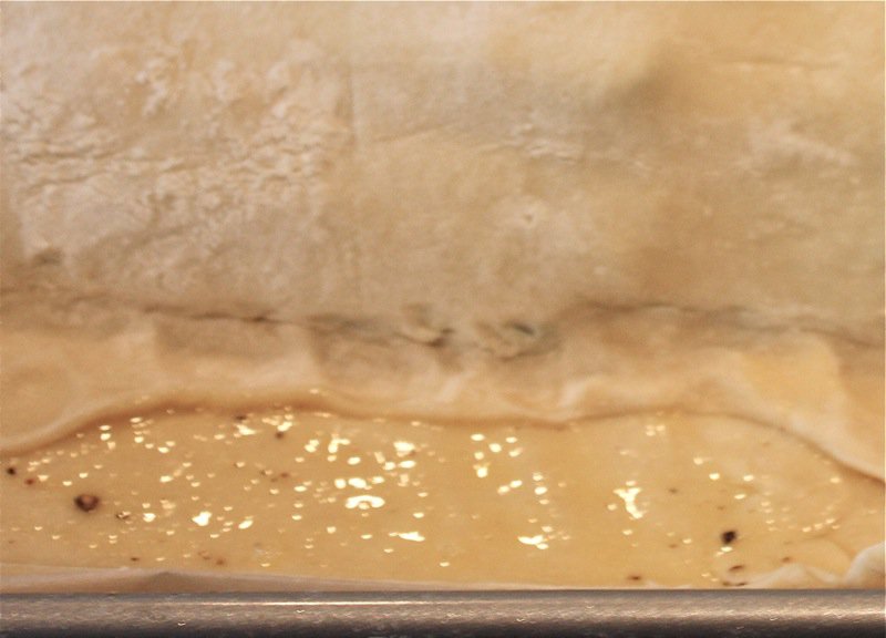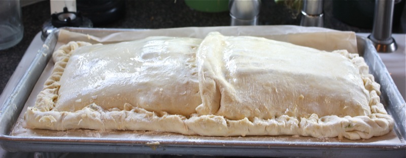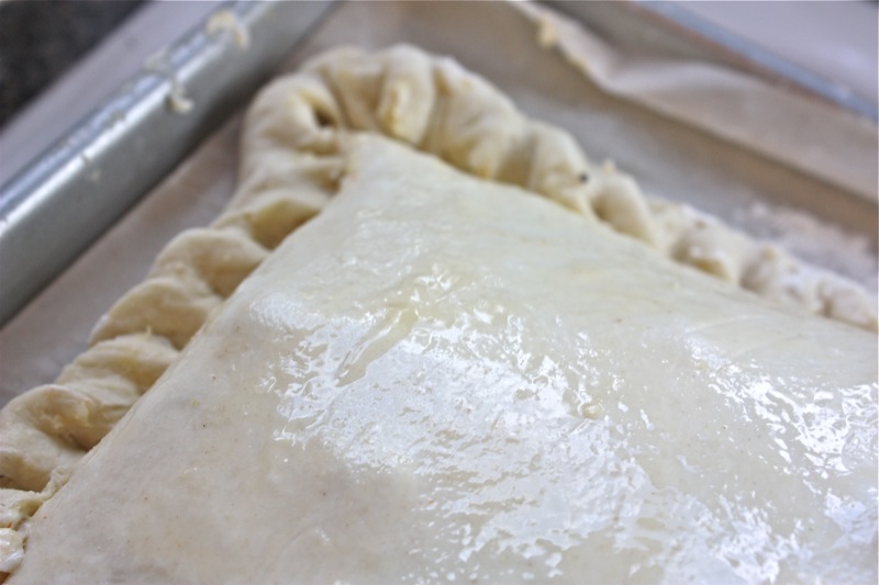 I did a rustic rolled edge, then brushed the entire croûte with the egg wash.