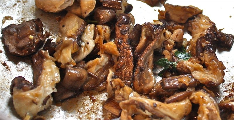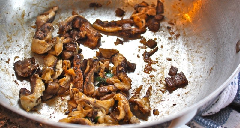 Where did it go? This little bit in the bottom of the pan is actually the entire mushroom. I was incredulous. They may be gigantic, but they cook down one heck of a lot!