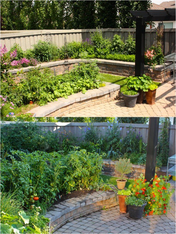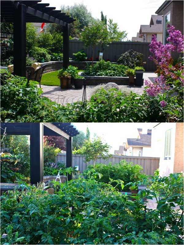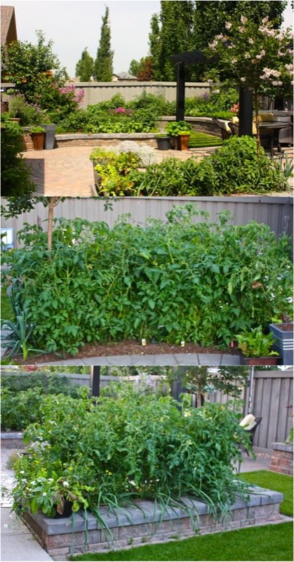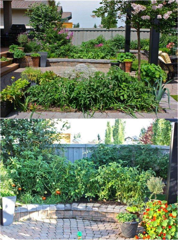 Below, you will see the end of June garden and under it, the end of July garden. Look at how high the tomatoes grew!