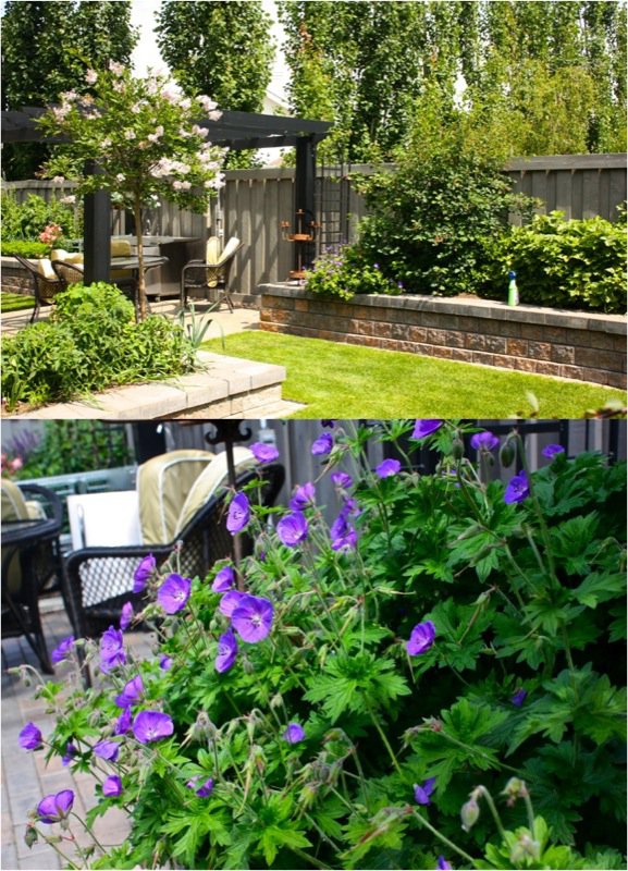 Below you will see the wild Geranium in June. In July, the Sugar Pumpkin has taken over that spot!