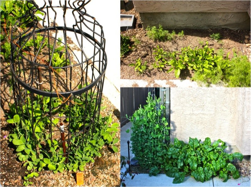 Below, again, another crop of sweetpeas in a different corner, and to the top right, my yellow beets at the end of June.