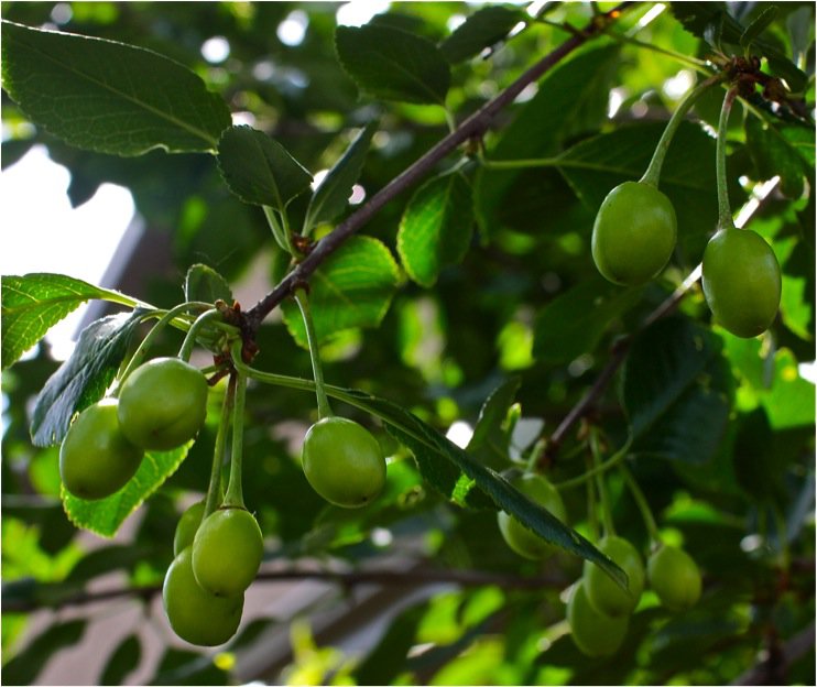 Some people have started picking their cherries already, and it is almost mid August. Mine can wait until next week. They only develop more flavour as they develop more colour. When they are perfect, the actually pit themselves as you pull them. The pit stays on the tree with the stem, and the pitted fruit goes into the bowl!