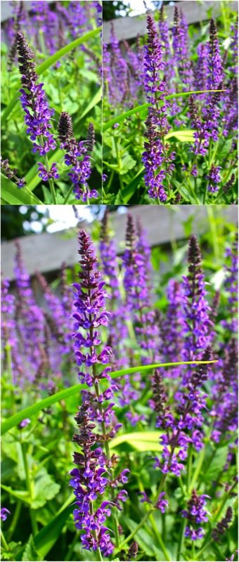 In June, the lilacs, the Pinks, the Columbine, and the chive flowers were all in purple and blue hues. I love that combination in a Spring garden with the lively greens.