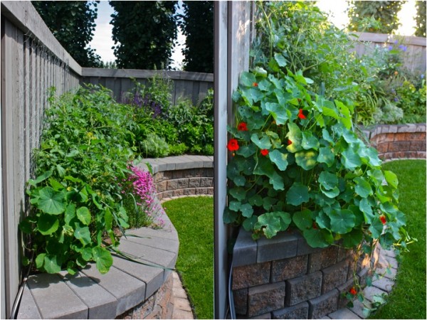 See how tiny they are, below, right, in June? At the end of July, the growth against the fence was startling!