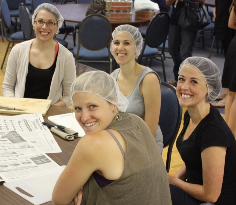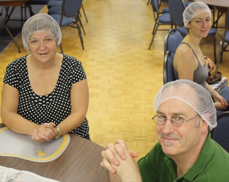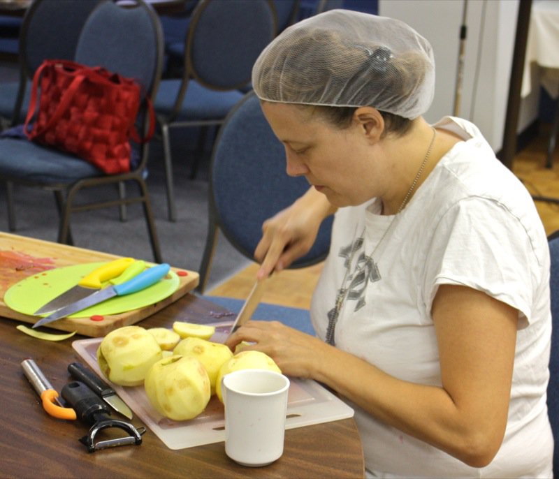 There were fifteen of us: hairnets on and ready to rumble! Kevin Kossowan, an OFRE district manager this year, dropped off some more fruit, and brought along Miss E who stayed to help!